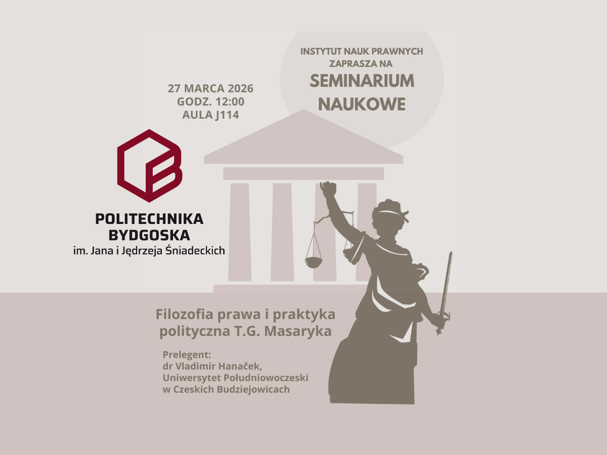 Instytut Nauk Prawnych serdecznie zaprasza studentów, doktorantów oraz pracowników naukowych na seminarium „Filozofia prawa i praktyka polityczna T.G. Masaryka”, które odbędzie się w piątek, 27 marca 2026 r., o godzinie 12:00 w auli J114.
